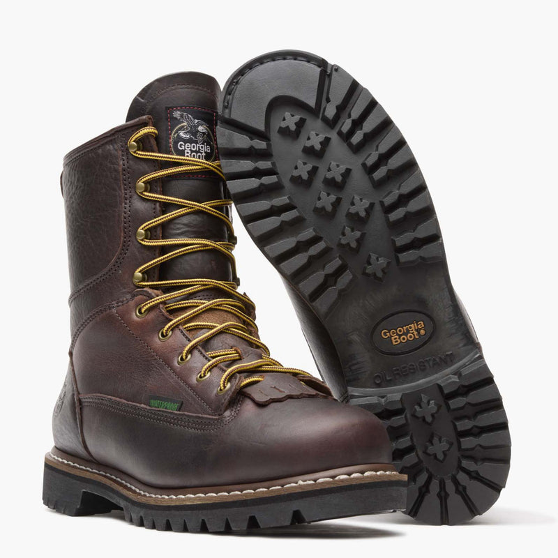 The rich brown boot has Goodyear® welt construction for maximum durability. It has a full-grain leather upper for long-lasting quality and a great look. The lace-up boot has an abrasion-resistant rubber "Georgia Logger" outsole that's oil-resistant.