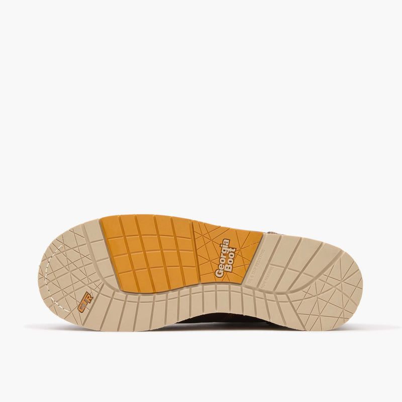 The boot interior features our removable AMP LT memory foam insole and the Georgia Waterproof System for all-day comfort guaranteed to keep your feet dry. The foundation consists of a fiberglass shank, cushioning EVA midsole, and a Carbo-Tec Rubber outsole. This boot meets ASTM F2413 Protective Toe Classification and ASTM F2413 Electrical Hazard Classification.