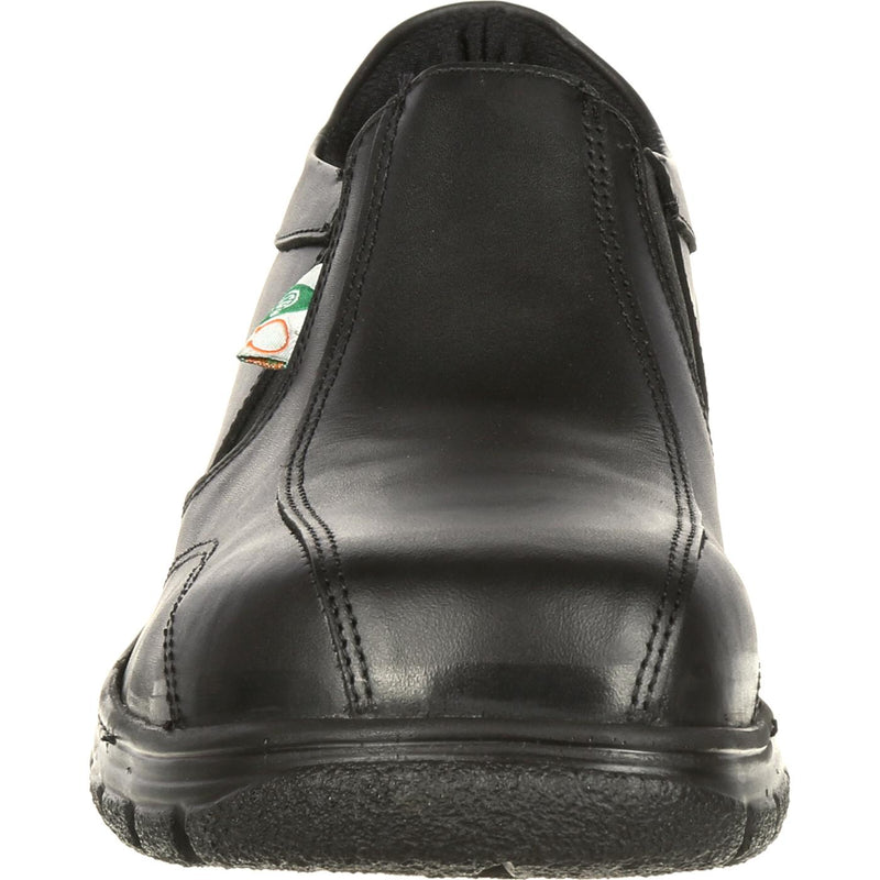 You can have a men's nice-looking slip-on leather shoe with tons of safety features that meet CSA standards. Just get the Mellow Walk.