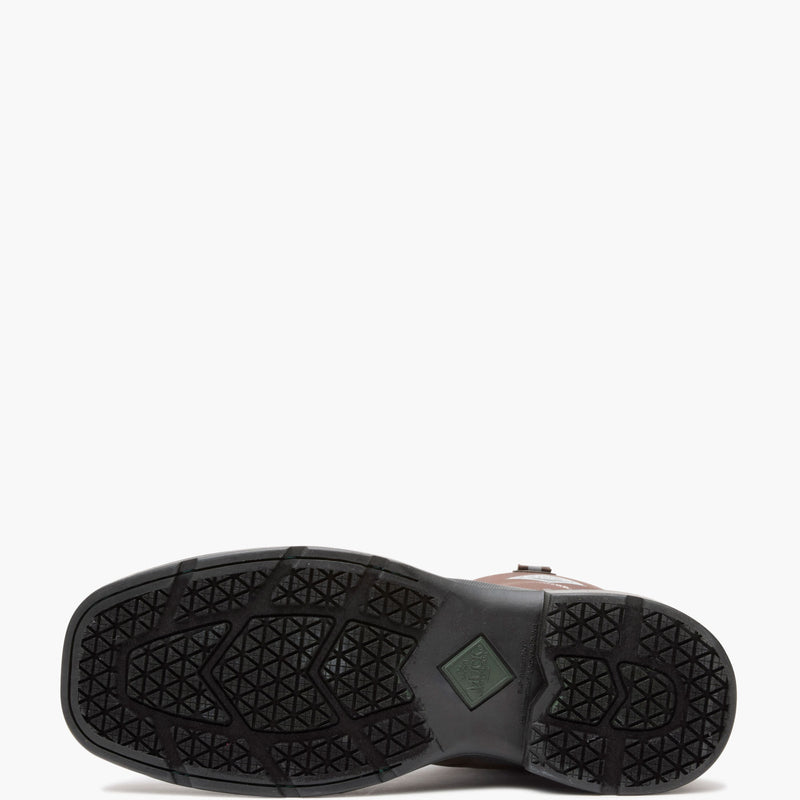 We’ve redesigned our iconic Chore with a Western boot flair. The classic Muck Boot neoprene adjusts to the unique contours of your foot, making these reliable boots flexible and 100% waterproof. The rubber overlay is easy to clean while the XPRESSCOOL™ lining keeps feet cool and dry. The molded heel kick off and lower outsole lug protect your foot from getting caught in stirrups. These tough boots feature a new square toe and pull-on side straps reminiscent of Western boots, as well as our quick cleaning rubber sole, offering more security and durability for every job. And, now work with added confidence with new alloy toe safety toe protection.
