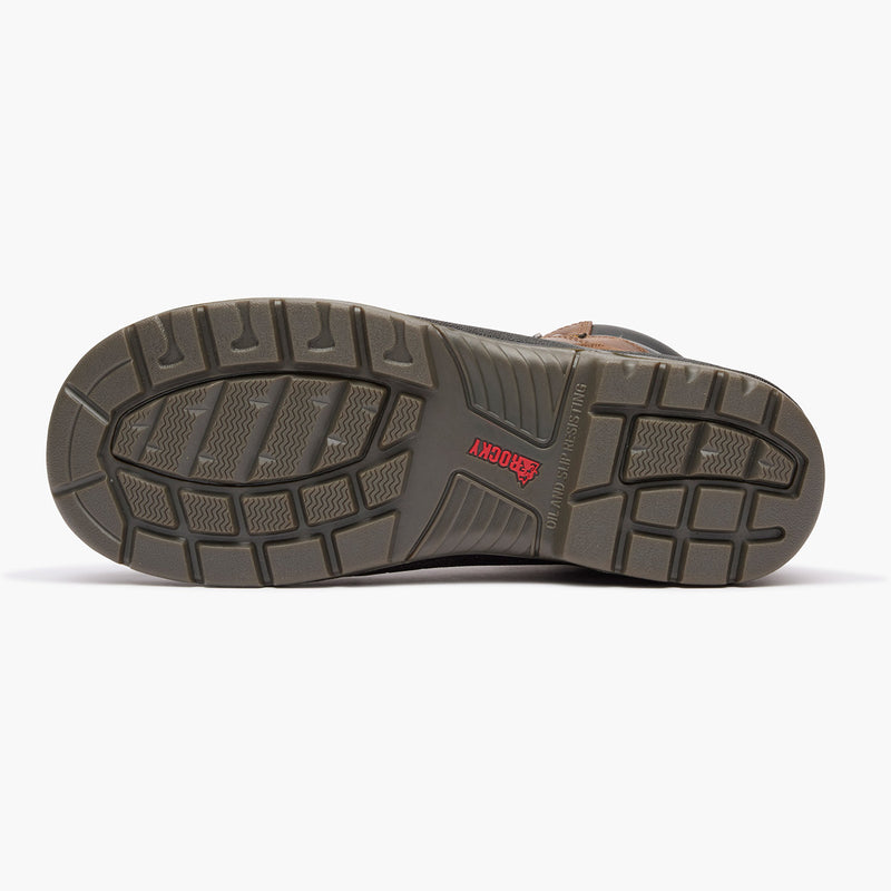 Ready to take on the day, these rugged composite toe work boots are prepared for anything. Built with tough, oil resistant polyurethane outsoles and a high abrasion toe cap for additional durability and protection. Wet environments are not a problem with all around Rocky Waterproof, guaranteed to keep your feet dry when you need it most. These distinct boots are five inches in height and have a direct attach construction. Take on the day with comfort and protection with this new collection by Rocky.