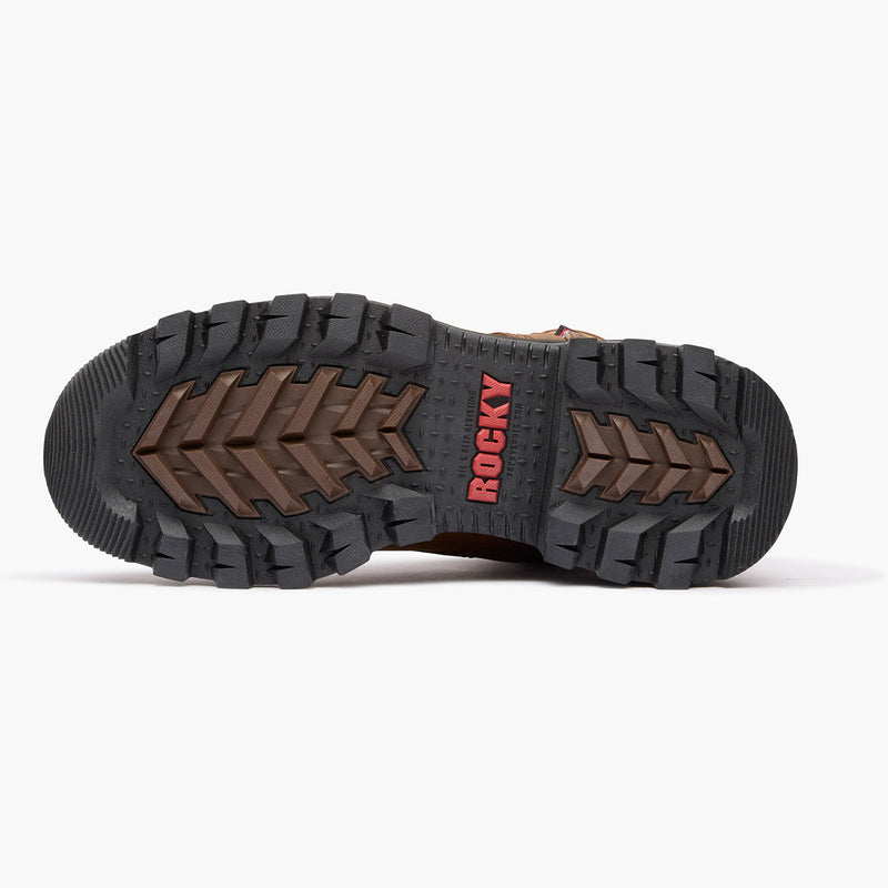 The Rams Horn Logger is a work boot built to withstand the world’s toughest environment: your job site. Designed for maximum comfort, safety, and durability, this 9" logger is packed with features. Oil & slip resisting rubber outsoles with a flexible direct-attached PU midsole combined with our revolutionary Rocky® Rebound cushioning technology guarantees comfort that will last. For strength and added protection this logger is built with a durable triple-ribbed steel shank. 1 Year Vapor Pass breathable recycled membrane waterproofing keeps your feet dry without trapping perspiration in. This 9" boot with a 2” heel meets ASTM 2413 protective toe and electrical hazard standards.