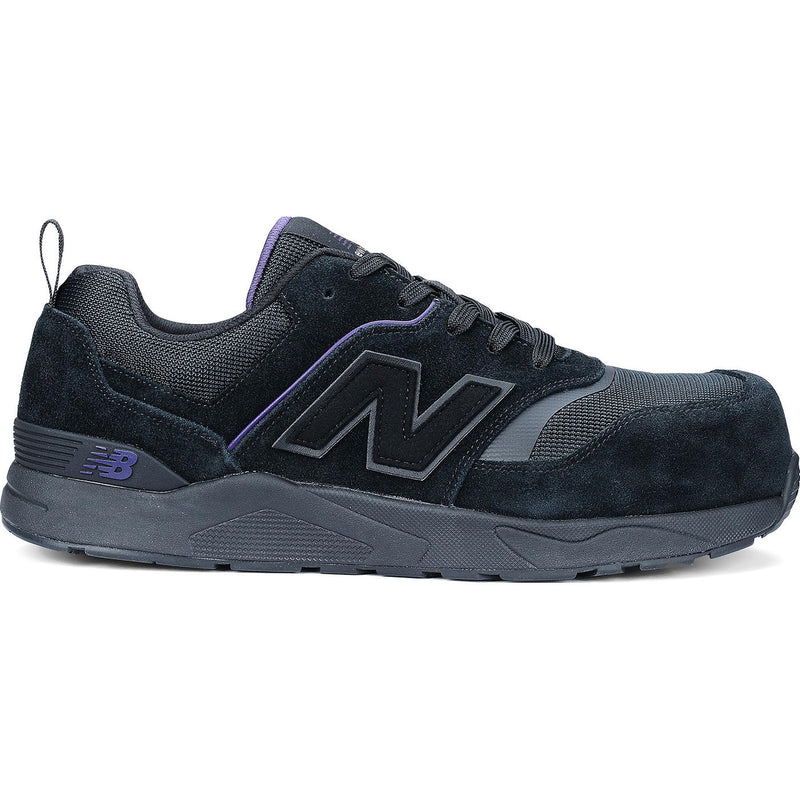 Weight-reducing technologies set the Elite Lite athletic work shoe apart from previous New Balance work footwear offerings. This women's lace-up style has a textile upper, in black, with accents of purple. Debris-free construction helps to keep a clean interior. A composite toe cap within the shoe meets ASTM F2413 standards for impact and compression. These shoes also are static-dissipative to SD10 ASTM F2413 standards. Cemented to the upper is an Acteva foam midsole with a rubber outsole, ideal for indoor use, makes full contact with the ground surface and meets or exceeds ASTM F3445 slip standards for work footwear. Airport friendly, these work shoes do not contain metal components.