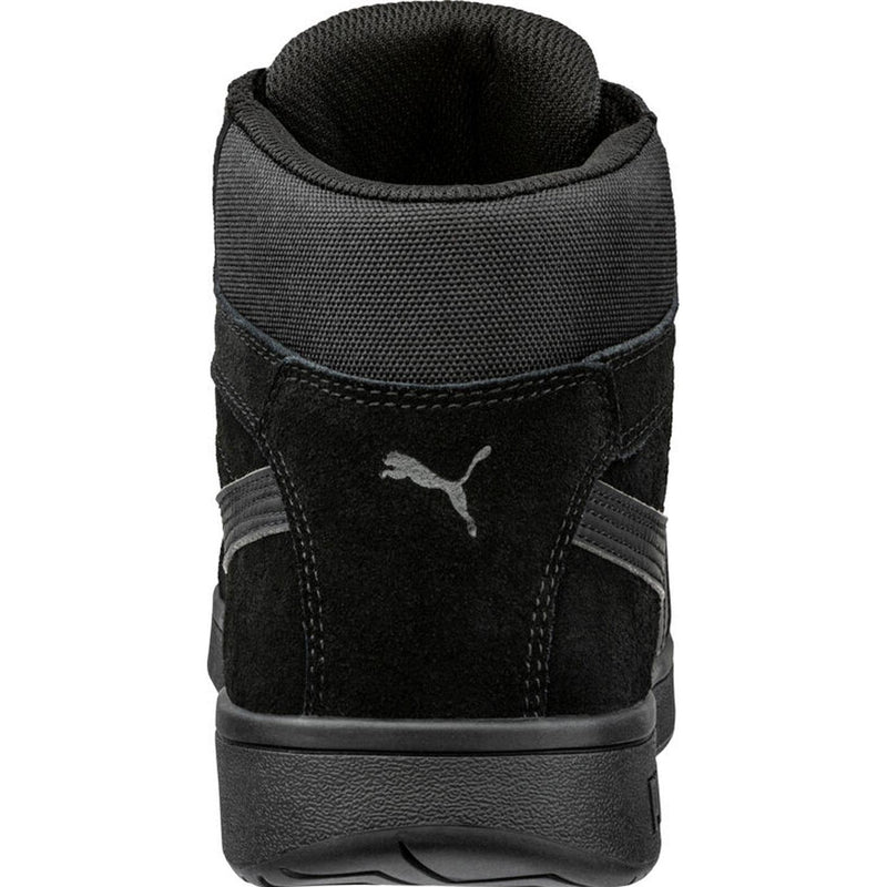 The iconic shoe you know and love from Puma now available in safety toe. This women's Iconic Suede Mid shoe supplies a little more height to cover ankles. Available in all black suede leather, the Iconic has a flat rubber outsole that is oil- and slip-resisting to ASTM F3445 SR standards and is heat resisting up to 572 degrees F for 60 seconds.