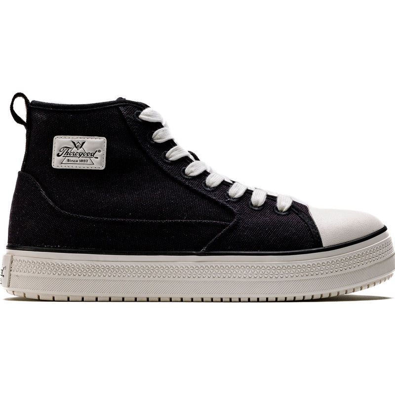Thorogood brings casual style to those who work indoors with the Warehouse Won line of safety footwear. This mid-height, lace-up style, available in unisex sizing, has a black canvas upper with contrasting white toe bumper, midsole and outsole, that looks good on and off the job. Housed within the round toe is a composite safety toe cap that meets ASTM F2413 safety standards for impact and compression. These shoes also meet ASTM standards for resisting electrical hazards. A removable footbed in combination with cushion midsole supply comfort. The flat outsole makes full contact with the ground and has a tread pattern designed to grip the warehouse floor, helping you to stay on your feet. Get a stylish shoe from a brand you can trust in the work industry - buy your pair of Thorogoods today.
