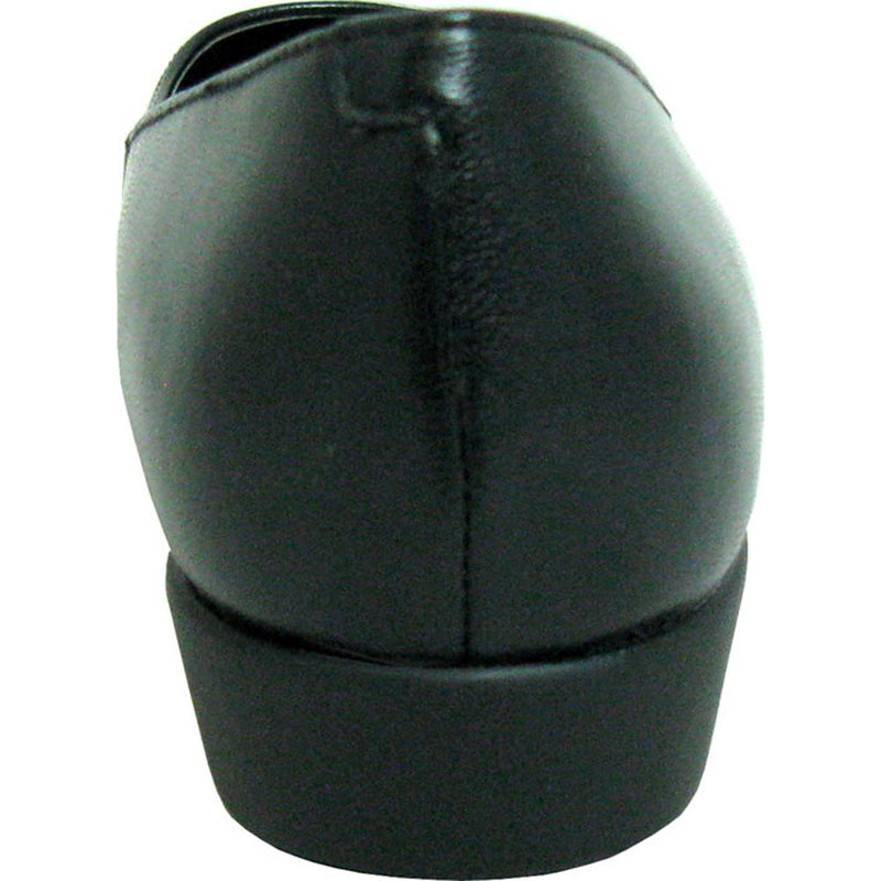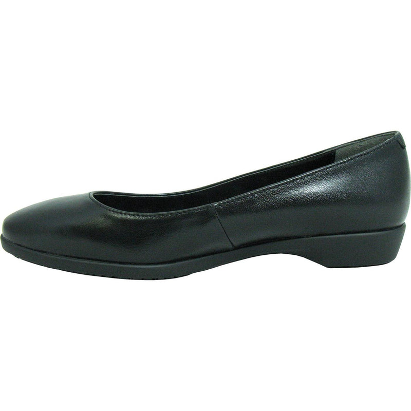 This slip-on shoe is black leather with a round toe, giving it the traditional look of black flats, but because these are flats from Genuine Grip they're not just dress shoes, but functional and practical dress shoes.